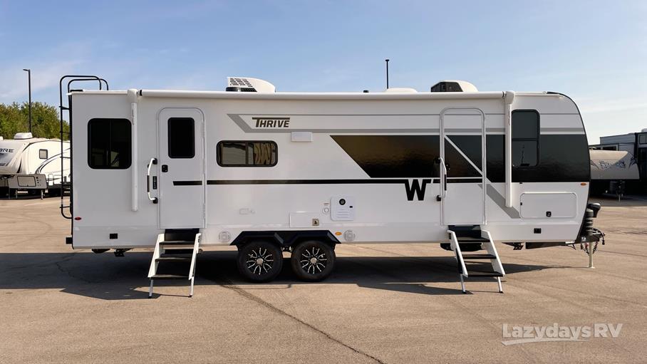 The Thrive 25RLS features one smooth-operating slide-out, expanding your living space and providing ample room for relaxation. Inside, you'll find a modern and inviting interior with all the amenities you need. The kitchen is equipped with top-notch appliances, perfect for whipping up your favorite meals on the go. The living area is designed for comfort, with plush seating and a smart layout that maximizes space. Whether you're lounging after a day of exploring or hosting friends, this travel trailer has you covered.